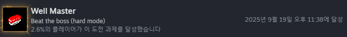 하드 모드의 보스를 잡고 게임을 클리어하기만 하면 달성할 수 있다.